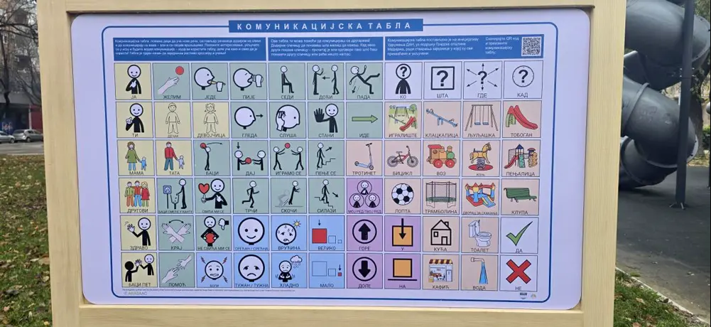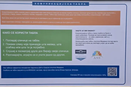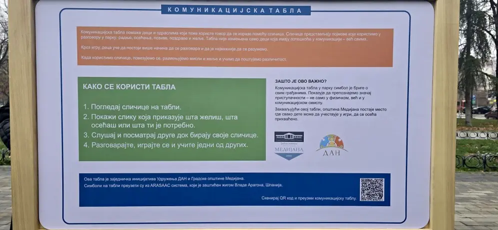 Захваљујући подршци Градске општине Медијана, постављене су прве комуникацијске табле у три парка у Нишу: на Тргу краља Александра Ујединитеља, у парку Чаир и у парку Светог Саве.