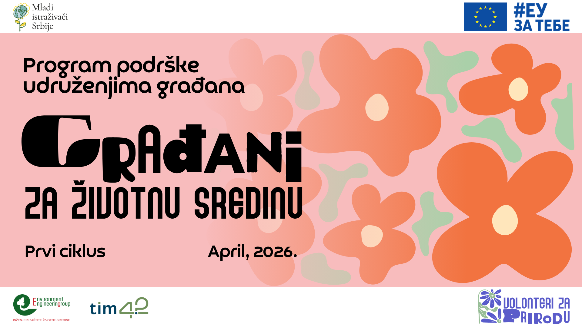 Програм подршке „Грађани за животну средину“ се реализује као део пројекта “Волонтери за природу” који спроводе Млади истраживачи Србије у партнерству са организацијама Тим 42 и Инжењери заштите животне средине. Пројекат је финансиран од стране Европске уније.